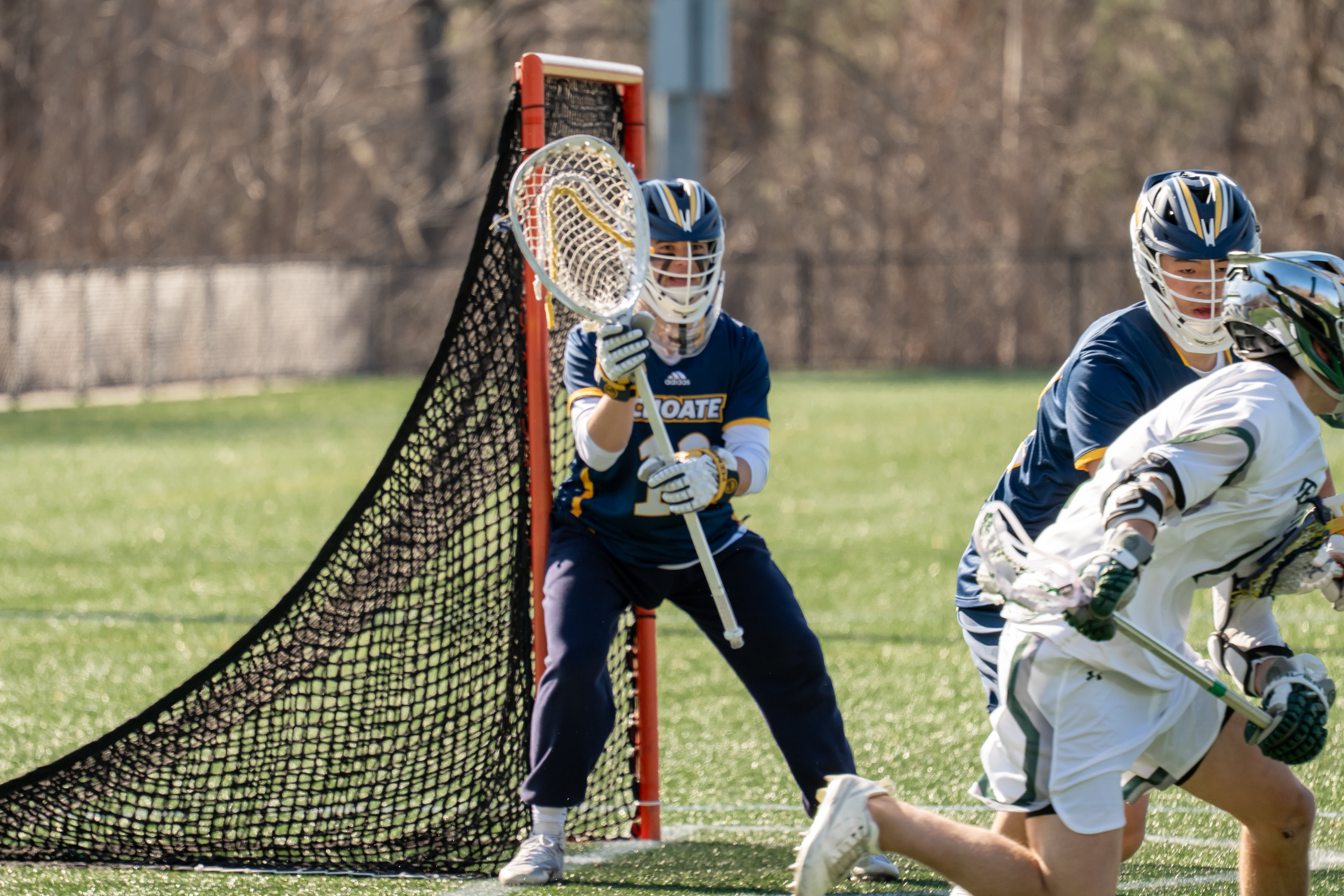 With a one-minute man-up in the final two minutes and possession when the sides were even, the Big Green were hunting for the equalizer. But Mac Privateer said no. The sophomore netminder, who made eight saves in the game, came up with a critical stop in the waning moments to secure Choate’s 11-10 win.
